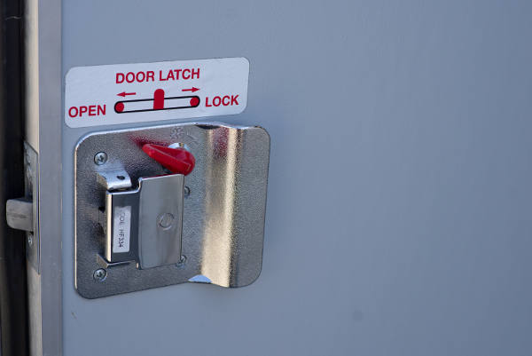 Each unit has a flushing toilet, push button faucet, privacy vents, electric fan, soap dispenser, carpeted floor, large mirror, toilet seat covers, light, steel lock, and vanity style sink.